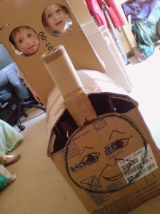 We have made one trip to Drusillas where I think nearly twenty rides were taken on Thomas’s train but apparently it’s too long to wait until the next visit… so under very specific instruction this week, shops were raided, several hours were spent planning, cutting and taping and now we have a rather large extra member of the family!