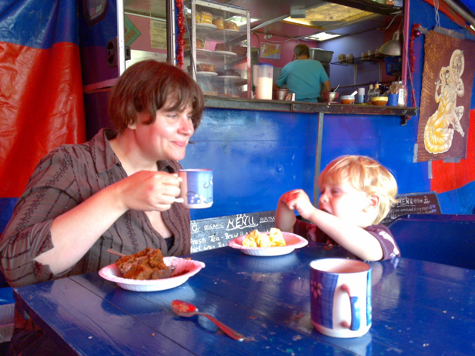 There’s the relief of a tea tent that serves HUGE slices of cake!